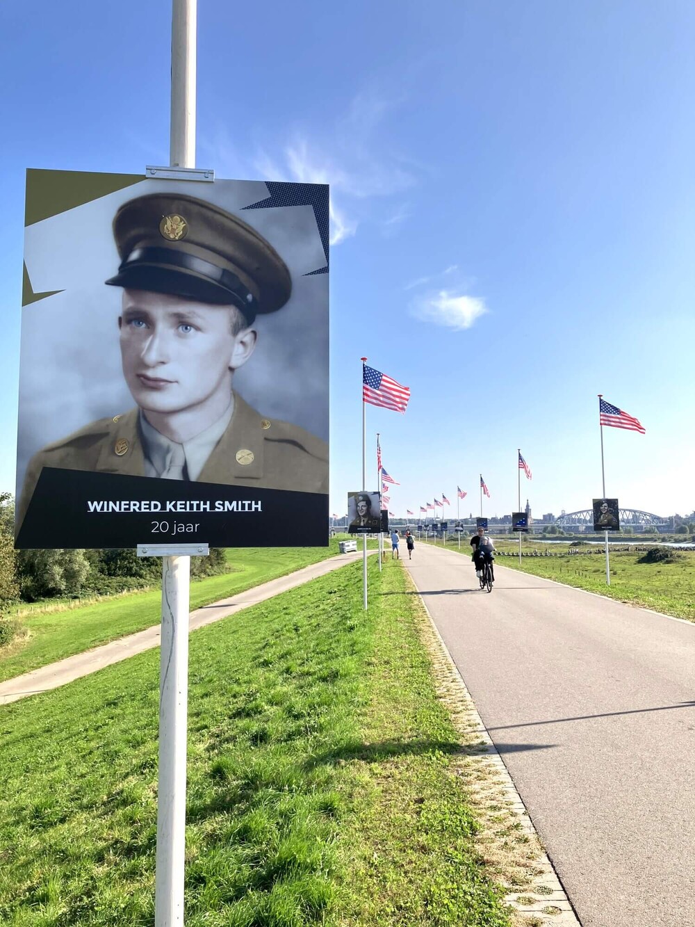 Voor de indrukwekkende Sunset March in Nijmegen op 21 september 2024, hebben wij foto's van de 49 Amerikaanse soldaten geplaatst, die tijdens de oversteek van de Waal tijdens Market Garden in 1944 om het leven zijn gekomen.