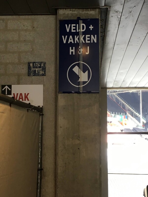 Voor de concertreeksen van Guus Meeuwis in het PSV Stadion: "Groots met een zachte G" hebben wij deze klapborden ontwikkeld. De sluizen bij de inloop worden anders gebruikt dan tijdens het concert. Omdat je niet wilt dat publieksstromen tegen elkaar opbotsen, moest er, als het grootste gedeelte van het publiek binnen was, éénrichtings verkeer in worden gesteld. Het publiek dat aan deze zijde het stadion binnen kwam, moest net buiten het stadion naar het toilet, vandaar de éénrichtingsroute.