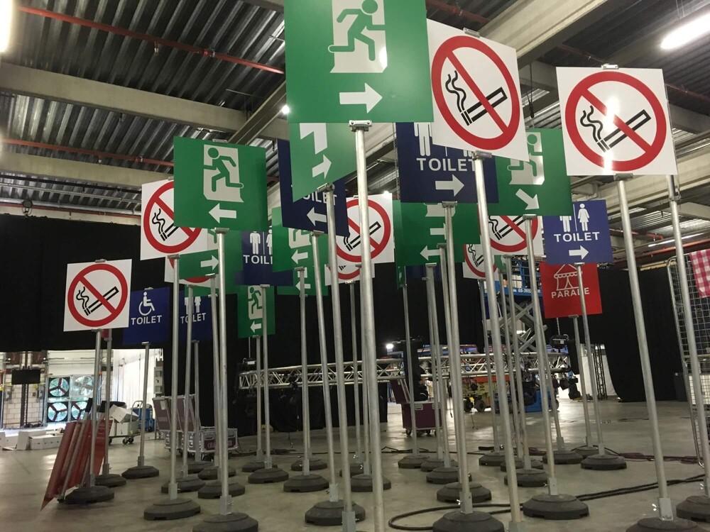 Bewegwijzering van evenementen kan op vele manieren worden uitgevoerd. Je kunt kiezen uit verschillende formaten, materialen en manieren van montage. Welke vorm je kiest hangt af van de locatie en jouw persoonlijke voorkeuren. Natuurlijk adviseren wij je graag. Wat je ook kiest Production Brothers verzorgt het voor jou.